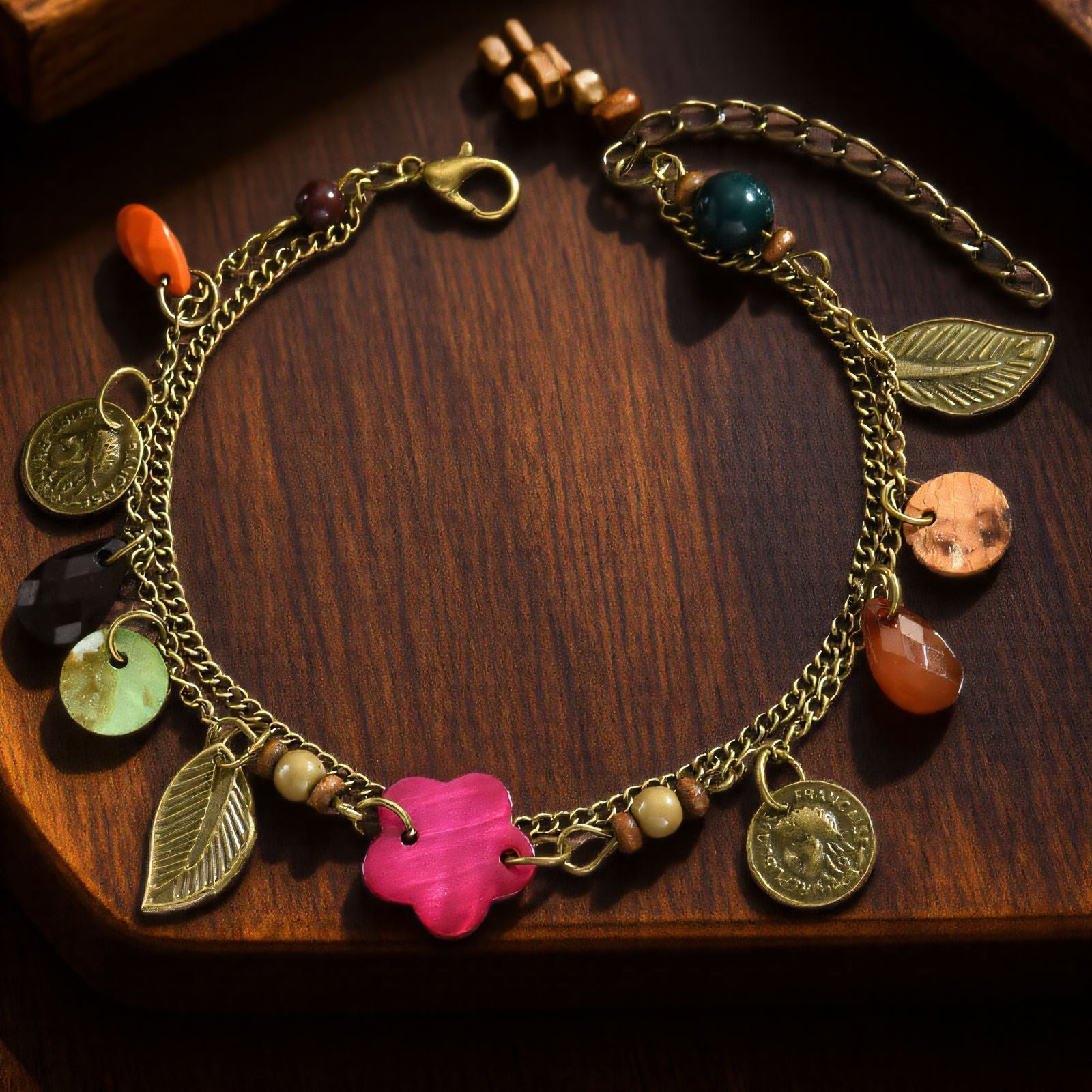 Bohemian Vacation Style Leaf Alloy Opal Anklet