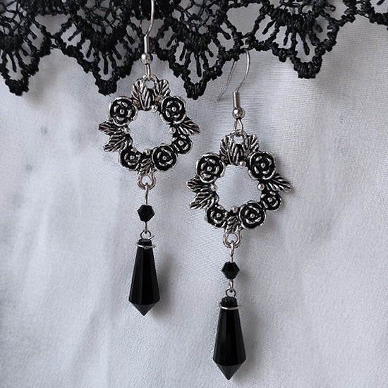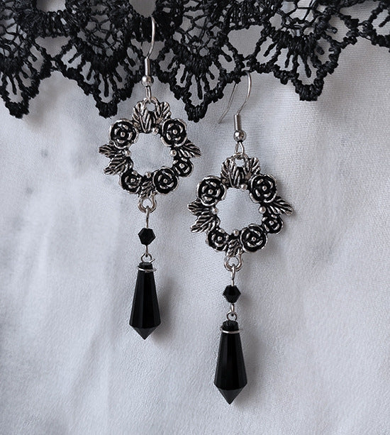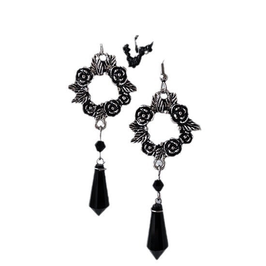 Gothic Rose Black Crystal Pendant Earrings Retro Fashion