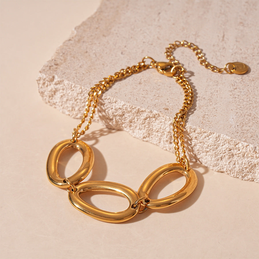 Titanium Steel Metal Geometric Oval Bracelet For Women